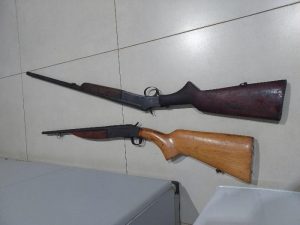 Na busca pessoal do primeiro indivíduo, foi encontrado em uma espingarda calibre .20 e 11 munições calibre .20. Com o Segundo indivíduo foi localizado uma espingarda sem numeração calibre. 36 e sete munições calibre .36, sendo que uma estava deflagrada e dois rádios de comunicação.