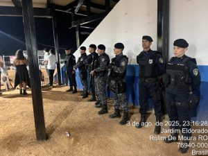 Polícia Militar realizou policiamento durante a 36ª Festa agropecuária em Rolim de Moura. A cidade recebeu visitantes e moradores para a tradicional festa agropecuária, um evento que celebra a cultura, a agricultura e a economia local. A festa agropecuária teve duração de 6 noites e contou com apresentação de rodeios e shows musicais, sorteios de prêmios e grande público.