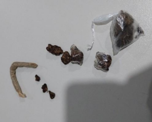 Com autorização da moradora do imóvel, foram realizadas diligências no local, sendo localizado o objeto arremessado, posteriormente identificado como substância entorpecente. Durante a revista pessoal e buscas complementares, os policiais apreenderam porções de substância análoga à maconha e uma porção de substância análoga ao crack.
