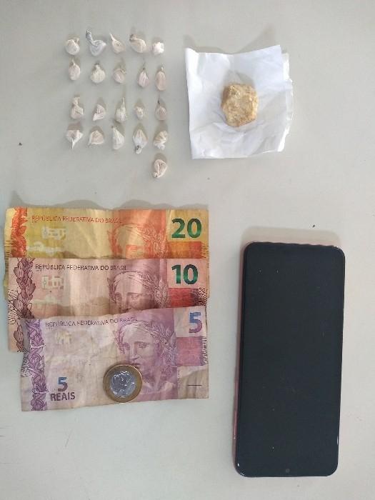 Ainda durante a abordagem aconteceu um barulho em um dos cômodos da casa, os policiais ao averiguarem o fato encontraram um indivíduo deitado em cima de uma cama e na revista pessoal em seus bolsos 22 pedras de entorpecente análogo ao crack e dinheiro em espécie. O jovem, de 18 anos, assumiu a propriedade da droga e declarou que as pessoas do local não sabiam do fato.