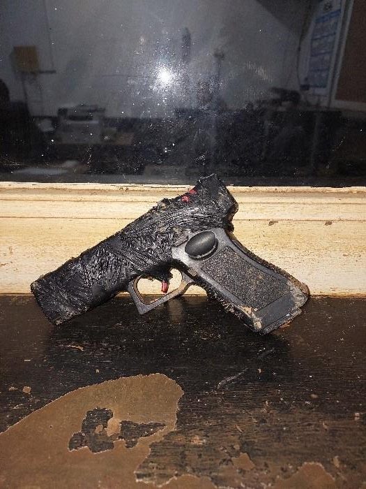 Na busca pessoal, nada de ilícito foi encontrado inicialmente. Contudo, ao realizarem varredura no local onde o indivíduo havia se escondido, os policiais localizaram um simulacro de pistola de cor preta, ocultado entre a vegetação.