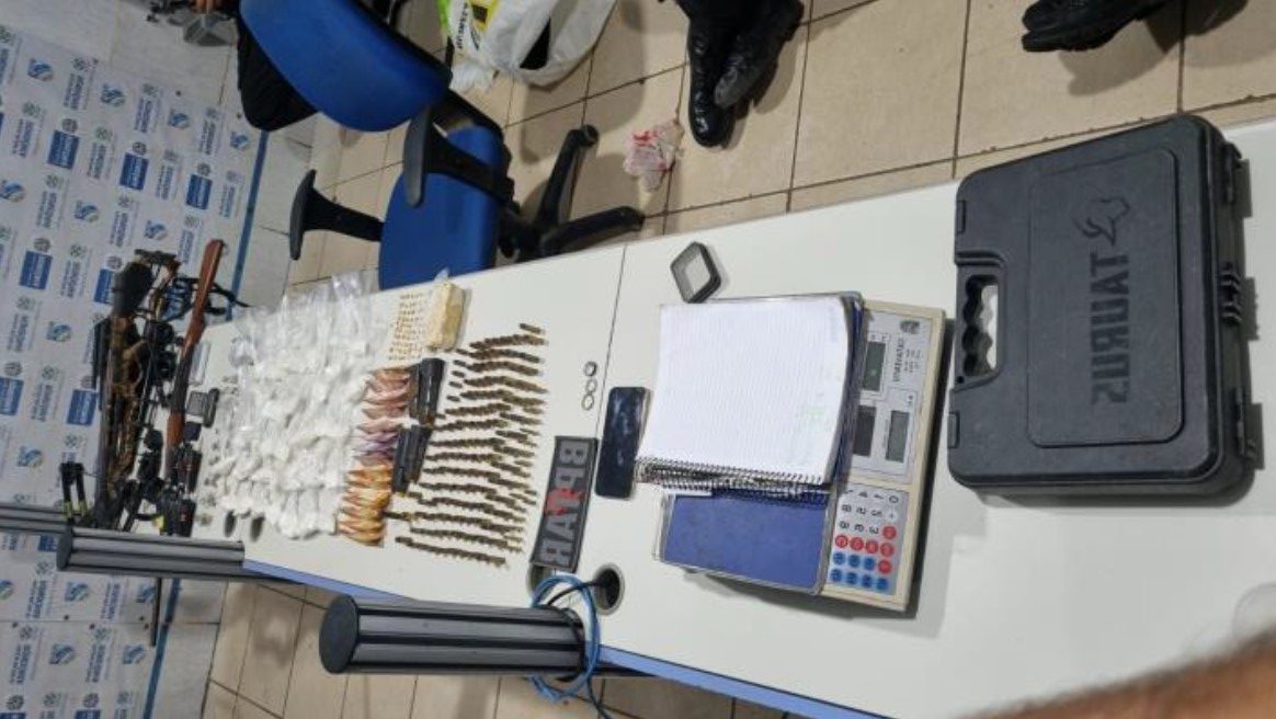Além disso, foi localizado um arsenal irregular, incluindo munições de vários calibres, carregadores e uma arma longa, evidenciando a estrutura organizada e o poder de fogo mantido pela associação criminosa. Também foram apreendidos equipamentos e objetos de origem possivelmente ilícita, que serão submetidos à perícia para identificação de procedência.