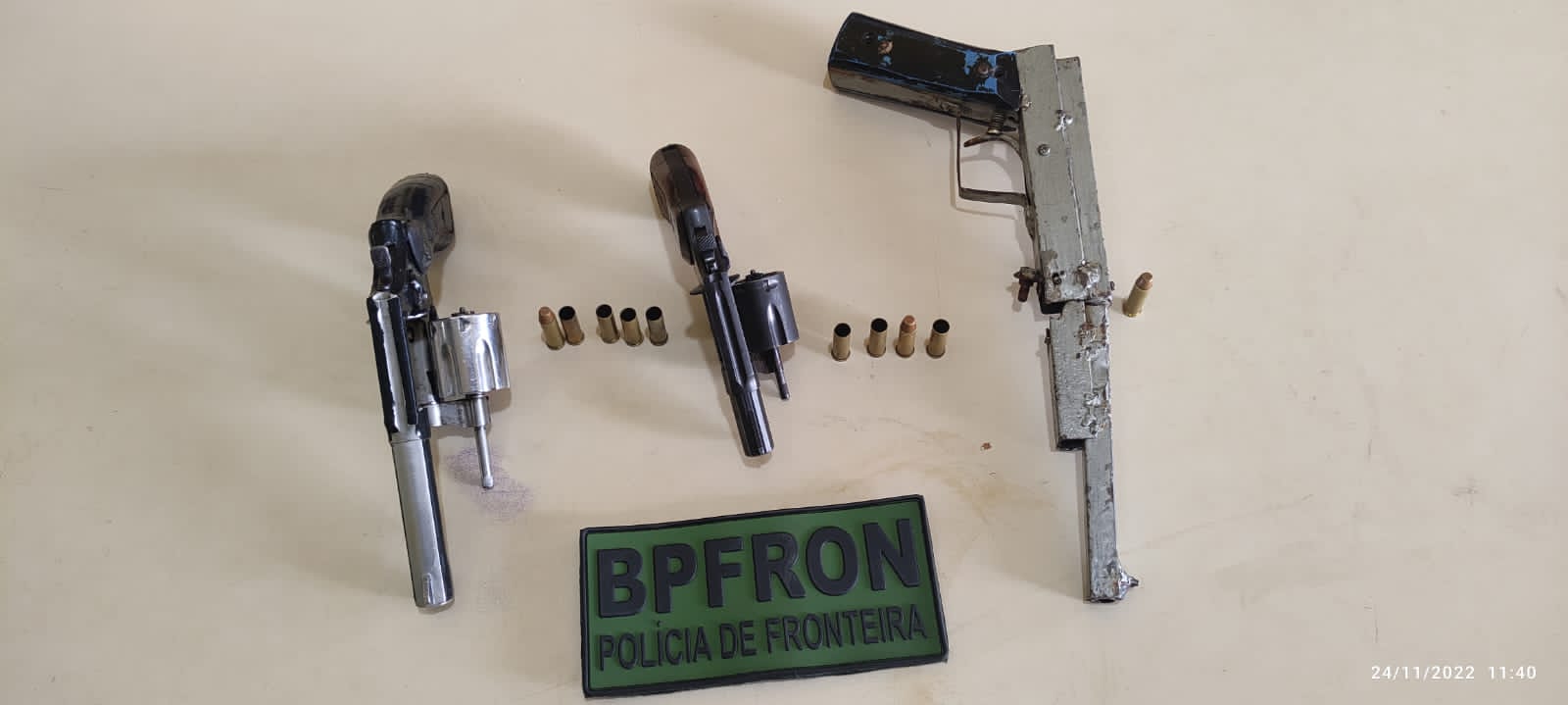 De acordo com a PM o segundo elemento identificado por Maycon N. de C. A., estava de posse de um revólver calibre 38, com quatro munições deflagradas, o terceiro elemento identificado por José M. da S. e S. estava de posse de uma arma de fabricação caseira de calibre 38, com uma munição deflagrada e outra munição picotada, e o quarto elemento identificado Luiz G. L., que estava dirigindo o veículo não foi encontrado arma, pois se evadiu em desabalada carreira pela mata, contudo posteriormente foi localizado nas proximidades do local do fato.