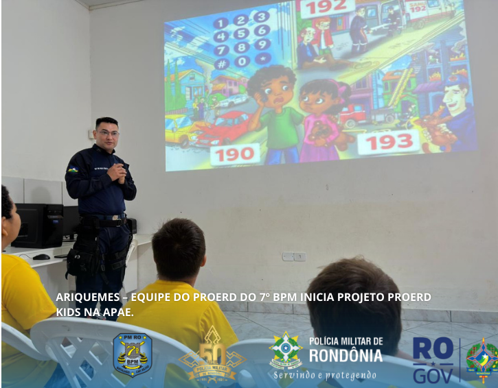 No dia 25 de fevereiro de 2026, o PROERD do 7º BPM iniciou o curso PROERD Kids na APAE de Ariquemes, após convite da psicóloga Laissa Lessa. Esta é a primeira vez que a equipe do programa no município desenvolve atividades na instituição, ampliando o alcance das atividades sociais da Polícia Militar de Rondônia em prol da sociedade.