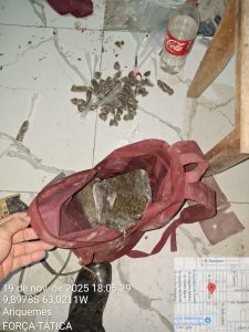 Uma ação eficiente da Polícia Militar resultou na apreensão de grande quantidade de substância entorpecente e materiais utilizados para fracionamento e venda de drogas, após denúncia anônima que apontava a atuação de um casal na prática de tráfico. A guarnição, da Força Tática do 7º BPM, composta pelo Sargento PM Alencar, Cabos PM’s Guimarães, Joelson e C. Morais, deslocou-se ao local indicado, onde encontrou um dos suspeitos tentando se afastar da residência e apresentando informações contraditórias sobre sua moradia.