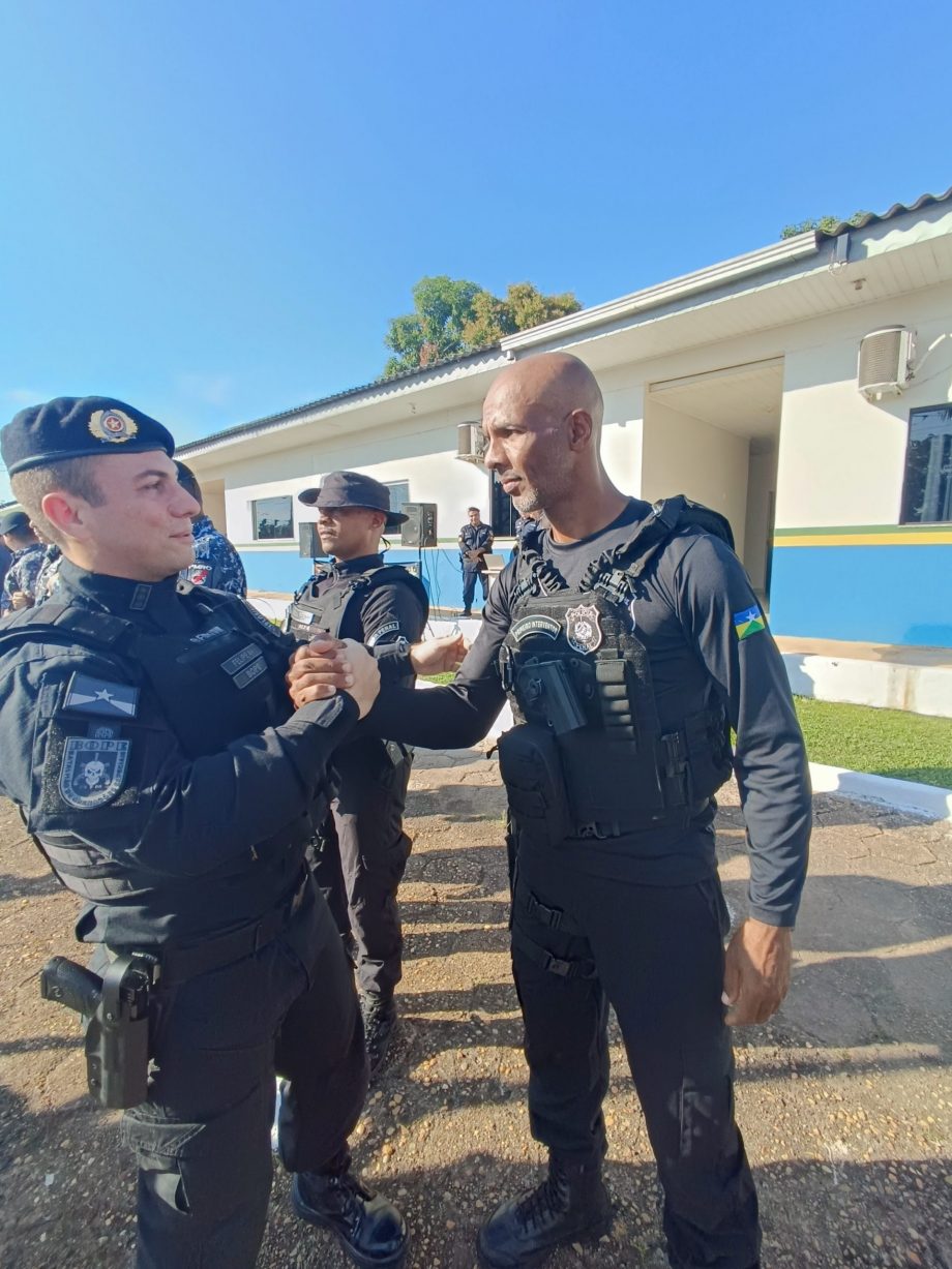 Representando com comandante-geral da PMRO, o comandante de Policiamento Especializado, coronel PM Agleydson Rodrigues Cavalcante, agradeceu as Instituições que disponibilizaram o efetivo para participar e adquirir conhecimento, e também ao 7º BPM pela acolhida com a equipe de instrução do BOPE. Cavalcante, destacou que o conhecimento adquirido neste Estágio preparou estes profissionais para aplicarem procedimentos que salvam vidas.