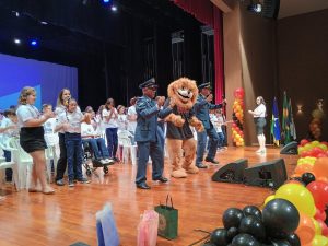 A cerimônia contou com a presença de diversas autoridades do Governo de Rondônia, incluindo Secretario Adjunto da SESDEC, Hélio Gomes, Coronel PM Estrela, Coordenador de Atividades Sociais da Polícia Militar. O PROERD, que é fundamental na prevenção ao uso de drogas entre crianças e adolescentes, reuniu pais, responsáveis e convidados para celebrar o êxito de mais um ciclo de formação. O mascote do programa, o Leão do PROERD, também esteve presente, garantindo a animação da criançada.