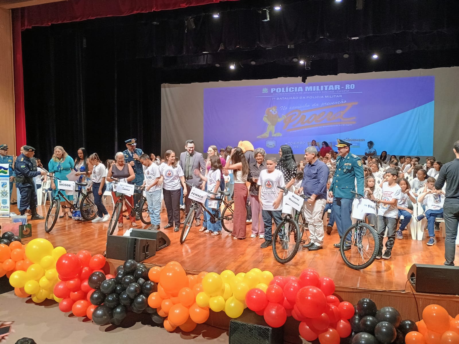 Nos dias 4 e 8 de dezembro de 2025, a Polícia Militar de Rondônia, por meio do 7º BPM, promoveu duas formaturas do PROERD (Programa Educacional de Resistência às Drogas) em Ariquemes. O evento teve início com as escolas municipais na quadra poliesportiva da Escola Albina Sordi, no setor BNH, e seguiu com as escolas estaduais no Teatro Belas Artes, respectivamente.
