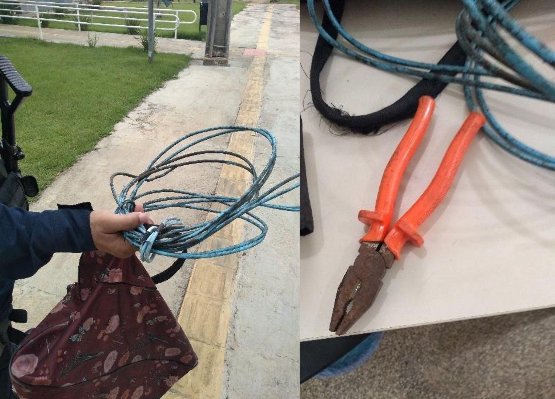 No início da manhã, a PM recebeu outra informação de furto em andamento, desta vez numa residência localizada no bairro Setor 03. A denúncia indicava que um homem havia escalado o padrão da residência e estava subtraindo os fios de energia. Próximo ao local, os policiais encontraram o suspeito e na bolsa dele os fios furtados e um alicate. Diante do flagrante, o homem de 36 anos, assumiu a autoria do crime e ainda disse que furta fios de casas que estejam fechadas ou abandonadas.