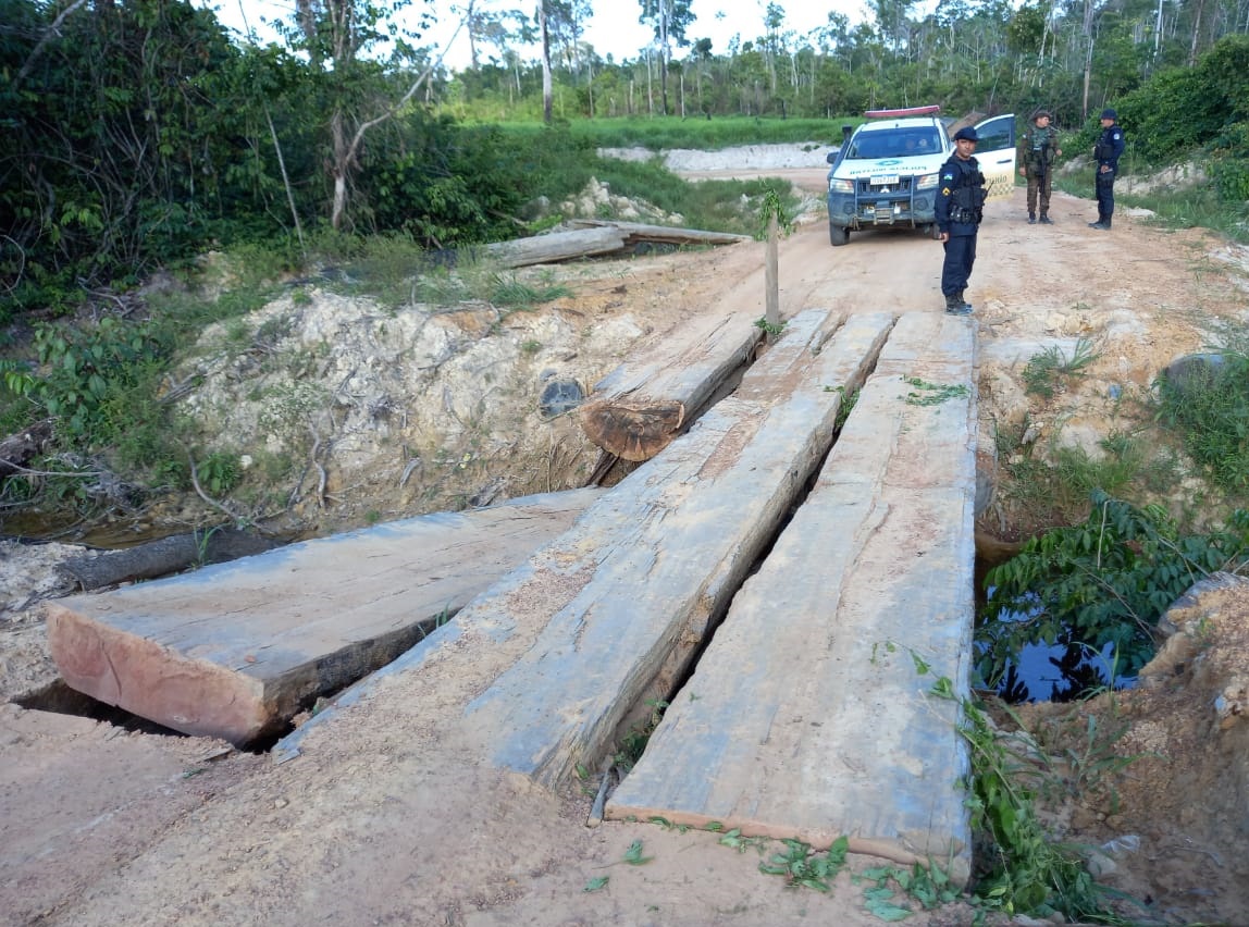 As equipes Guardiões do Bioma receberam informação de que várias pessoas envolvidas na exploração clandestina de madeira na região de Cujubim, reuniram-se e estavam cortando as pontes da região com o objetivo de impedir a apreensão do caminhão e o deslocamento das forças policiais. Uma ponte foi destruída por criminosos. O reforço policial da Força Tática de Machadinho D’oeste e do Batalhão de Policiamento de Fronteiras – BPFRON foram acionados para reforçar e inibir quaisquer ações contra as forças policiais da operação.
