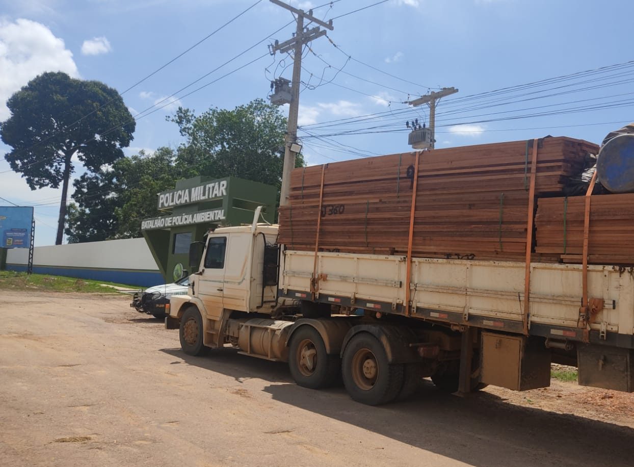 No último domingo, 13, a Polícia Militar, por meio da Patrulha Ambiental do BPA – Batalhão de Polícia Ambiental, localizou e apreendeu cerca de 50 metros cúbicos de madeira ilegal. A madeira estava sendo transportada por um caminhão na BR 364 no munícipio de Candeias do Jamari, e a carga estava coberta por lona para camuflar o crime de transporte ilegal. Trata-se da espécie “Angelin Pedra”, nome científico: Hymenolobium Petraeum, que é considerada uma das maiores árvores da floresta amazônica, onde pode chegar até 60 metros de altura. O motorista do veículo apresentou o DOF (Documento de Origem Florestal) incompatível com a carga. Logo, após aferição da volumetria da carga realizada pelos policiais militares ambientais, foi realizada a apreensão do material e do veículo, os quais foram levados ao Batalhão de Polícia Ambiental em Candeias do Jamari.