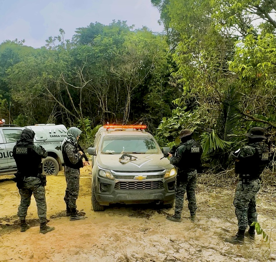 Após buscas no matagal, ambos os indivíduos foram encontrados caídos, um com ferimento torácico e outro com ferimento na perna. Junto a eles, foram apreendidas duas armas de fogo e munições, além de aparelhos celulares. A Perícia Criminal foi acionada, mas devido à distância e ao histórico de conflitos na região, não pôde comparecer imediatamente ao local.