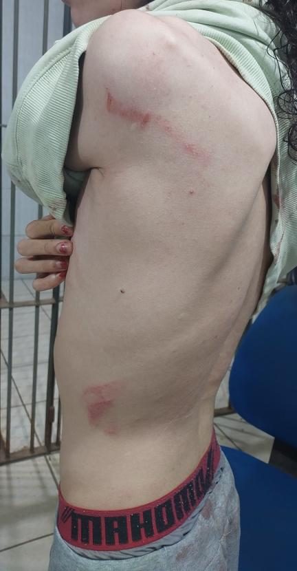 Ao chegar ao local, a guarnição constatou que a situação teve início após um desentendimento familiar, agravado pelo consumo de bebida alcoólica. Segundo relatos colhidos, a discussão evoluiu rapidamente para agressões físicas mútuas, envolvendo padrasto, enteado e a companheira, resultando em quedas, empurrões e lesões corporais.