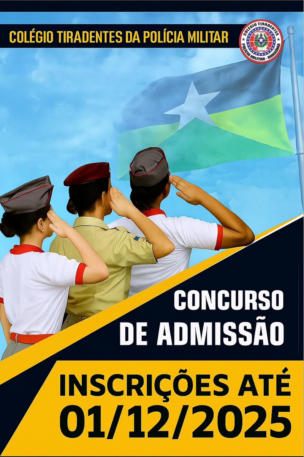 O DIRETOR-GERAL DO COLÉGIO TIRADENTES DA POLÍCIA MILITAR – Unidade I, no uso de suas atribuições legais,publica o Edital que regulará o Concurso de Admissão de novos alunos ao CTPM-I para o ano letivo de 2026.