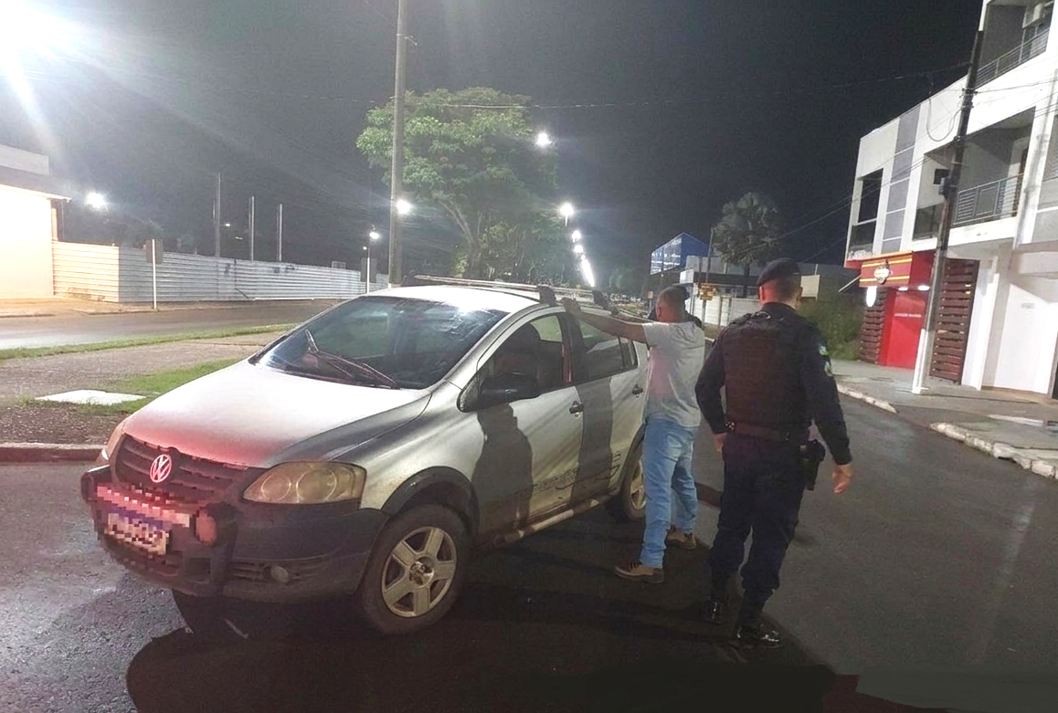 Uma guarnição PM realizava patrulhamento ostensivo pela avenida Brigadeiro Eduardo Gomes, sentido BR-364, quando visualizou um veículo trafegando com os faróis apagados. Em seguida, o condutor realizou uma conversão à esquerda e ingressou na contramão da avenida Presidente Tancredo Neves, passando a circular pela via destinada ao fluxo oposto de veículos, gerando risco de colisão frontal.