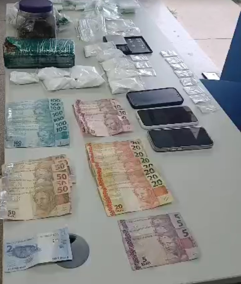 Ao final da ocorrência foram tirados de circulação 1,702 kg de maconha, 482,88 gramas de cocaína, dois aparelhos celulares, uma balança digital e R$ 1.287 em espécie.