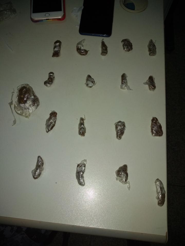 Ao ser questionado sobre o material, ele informou que necessitava multiplicar seu dinheiro, então, comprou maconha e a separou em porções menores para vendê-las. O suspeito, de 19 anos, autorizou a entrada dos policiais militares em seu apartamento. No local estava sua namorada, de 18 anos, e foram encontradas mais 18 porções de substância semelhante a maconha.