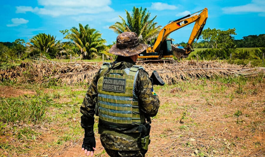 Durante ação conjunta realizada no dia 30 de setembro de 2025, a Polícia Militar, por meio do Batalhão de Polícia Ambiental, em parceria com a Secretaria de Estado do Desenvolvimento Ambiental (SEDAM), flagrou um expressivo desmatamento ilegal em área de preservação permanente (APP), localizada na zona rural entre os municípios de Cacaulândia e Ariquemes.