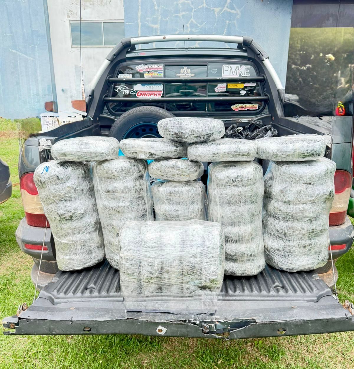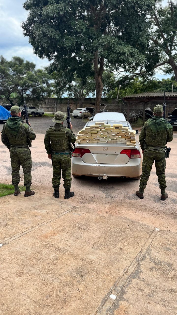Após ordem de parada e acompanhamento tático, foi realizada a abordagem. Durante busca veicular, os policiais localizaram 51 tabletes de substância análoga à pasta base de cocaína, totalizando cerca de 52.200 gramas do entorpecente. Também foram apreendidos R$ 384,00 em espécie e um aparelho celular da marca Samsung