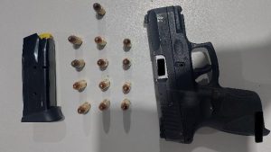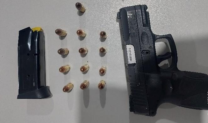 Antes da revista pessoal, um dos ocupantes informou espontaneamente que portava uma arma de fogo na cintura, alegando utilizá-la para sua proteção. Durante a busca pessoal, os militares localizaram uma pistola Taurus G2C, calibre 9 mm, com 13 munições intactas.