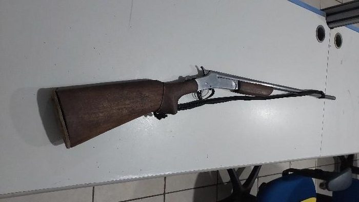 O homem foi localizado em uma residência nas proximidades. Durante a revista pessoal, nenhuma arma foi encontrada inicialmente. No entanto, após buscas ao redor do imóvel, os policiais encontraram uma espingarda calibre 28 de uso permitido, compatível com a descrição repassada na denúncia. A pochete com munições mencionada pelos moradores não foi localizada.
