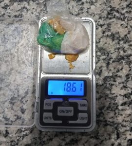 Em continuidade às diligências, a guarnição realizou uma varredura no local onde o casal estava sentado e localizou, ao lado da tampa do bueiro, outra porção de substância análoga ao crack, de tamanho médio. Ao todo, a droga apreendida pesou aproximadamente 18,61 gramas.