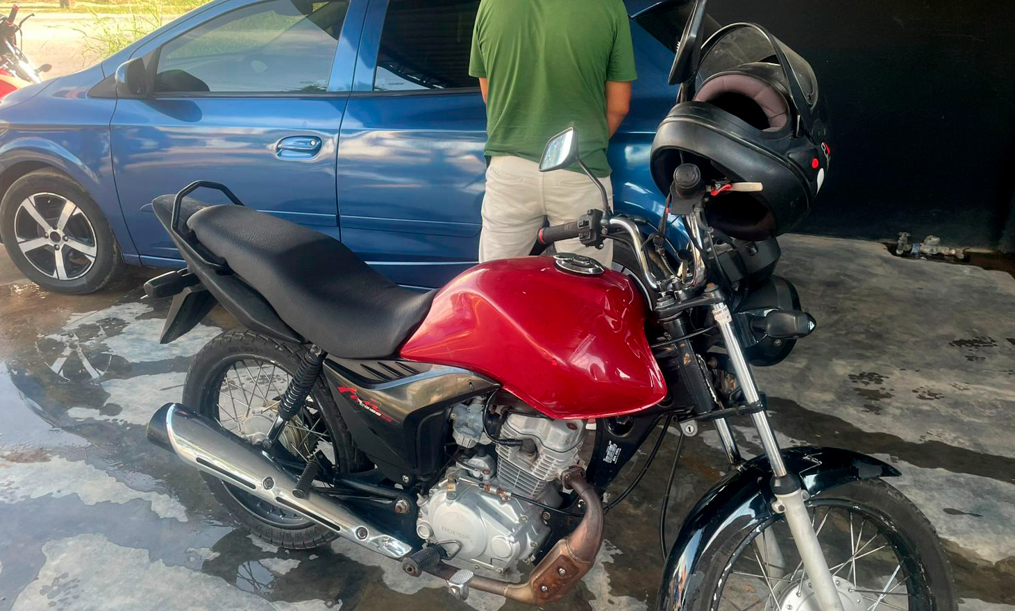 Durante a busca pessoal e a checagem veicular, os policiais constataram que a motocicleta possuía registro de furto no município de Espigão do Oeste. Questionado, o abordado afirmou ter adquirido o veículo sem documentação, pelo valor de R$ 4.000,00, pagos de forma parcelada.