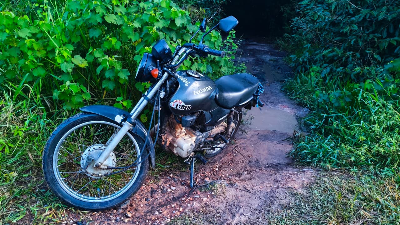 Durante incursão em uma área localizada no final da Rua Divino Taquari, T-11, conhecida como “Matinha”, os policiais realizaram varredura em meio à vegetação e lograram êxito em localizar uma motocicleta Honda CG Fan 125, que se encontrava abandonada. Após consulta aos sistemas de segurança, foi constatado que o veículo possuía registro de roubo/furto. A motocicleta estava sem chave na ignição e posicionada em um local de difícil acesso, caracterizado por vegetação densa e área alagadiça.