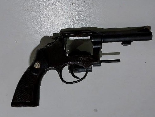 Durante a busca pessoal, os militares encontraram no bolso da bermuda de um dos abordados um revólver calibre .38, municiado com seis munições intactas e. mais cinco munições do mesmo calibre.