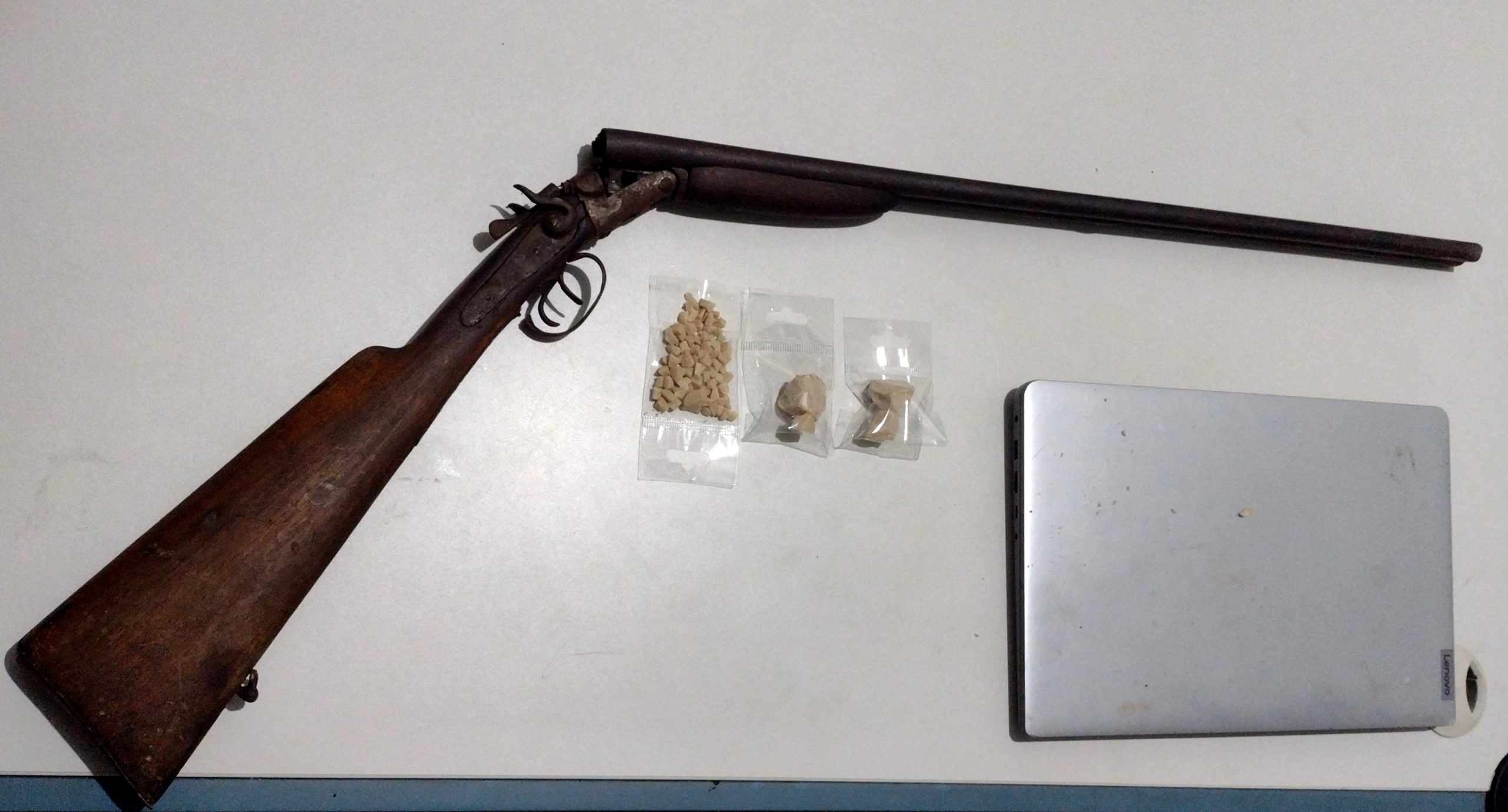 Nas buscas, foram encontradas várias porções de crack prontas para comercialização, uma espingarda de dois canos, um notebook, quatro celulares, duas bicicletas da marca Lotus, além de outros objetos abandonados na fuga. Segundo informações obtidas, a droga e a arma pertenceriam a outro suspeito que não foi localizado no momento.