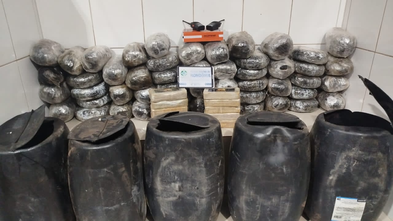 A Polícia Militar apreendeu mais de 50 quilos de drogas na tarde de domingo (20), após uma tentativa de abordagem frustrada e um acidente envolvendo um veículo suspeito na RO-383, nas proximidades do rio Jatuarana, em Cacoal.