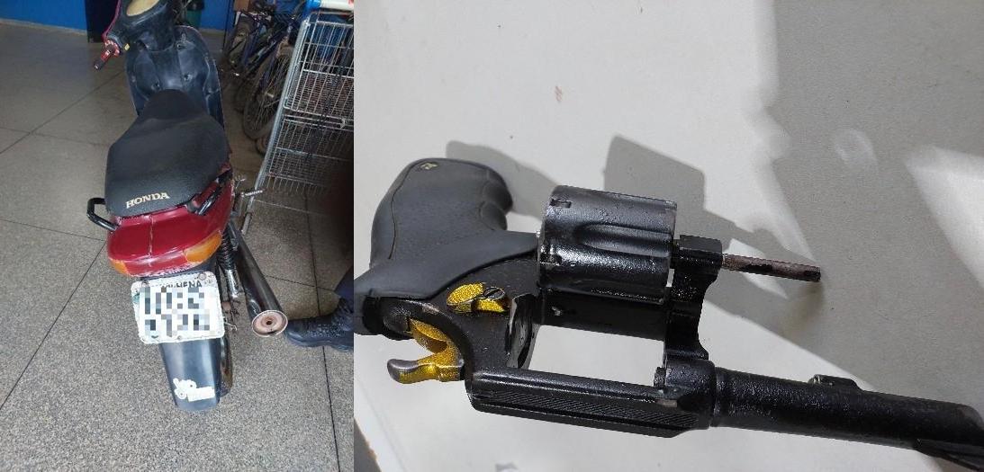 Após conversarem com a vítima, em poucas horas os policiais localizaram o primeiro indivíduo de 27 anos em uma residência no bairro Setor 12. No local, ele confessou participação no crime e apontou o comparsa de 19, que também foi encontrado em outra residência no bairro Setor 08. Na casa do segundo suspeito, os policiais recuperaram a motocicleta roubada e apreenderam um revólver calibre .38, que teria sido usado no crime.