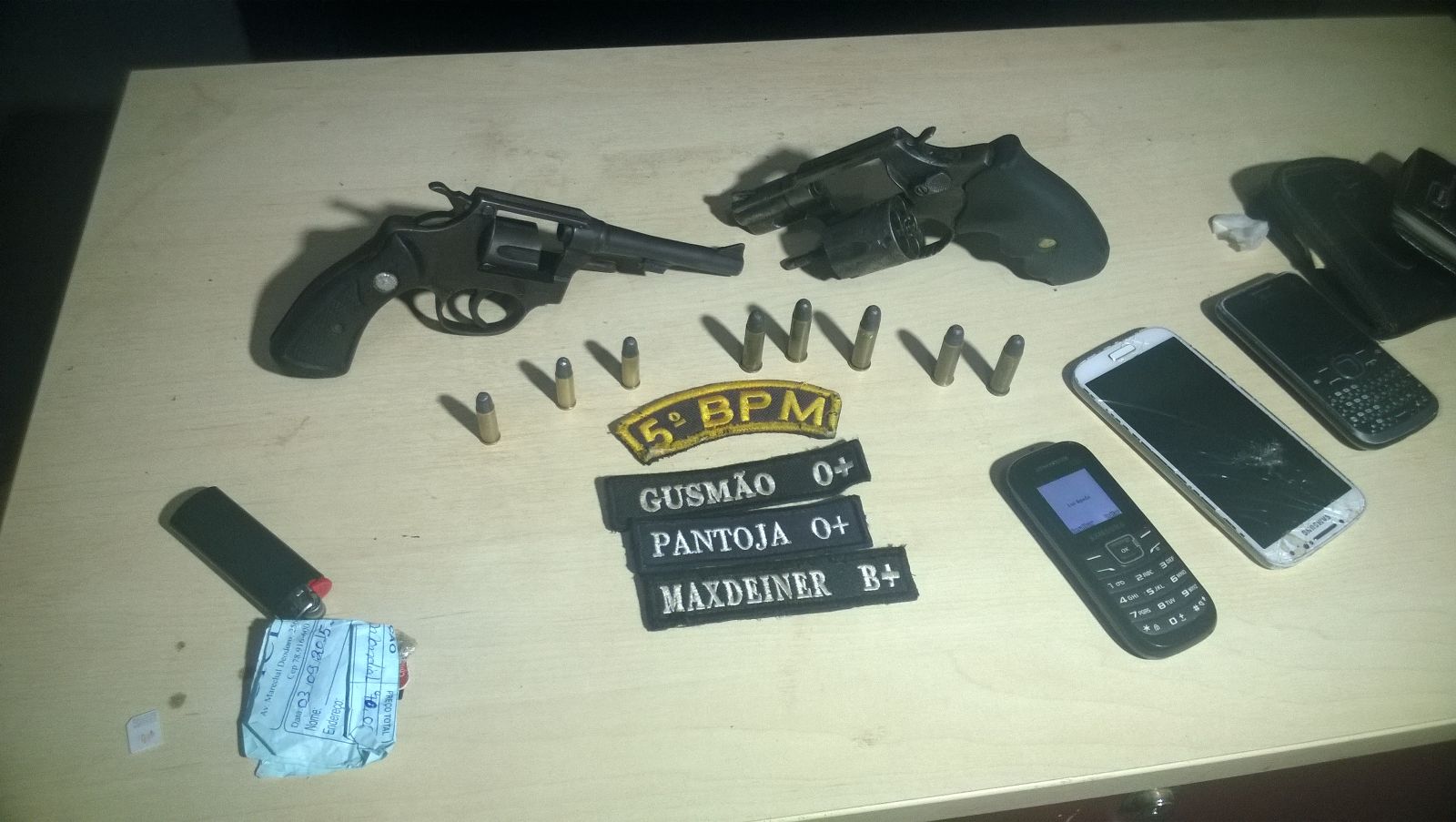 Segundo o sargento Gusmão e sua guarnição, os elementos estavam na intenção de praticar assaltos. Durante revista, dois revólveres calibre .38, municiados, uma porção de maconha, dinheiro e vários celulares foram encontrados.