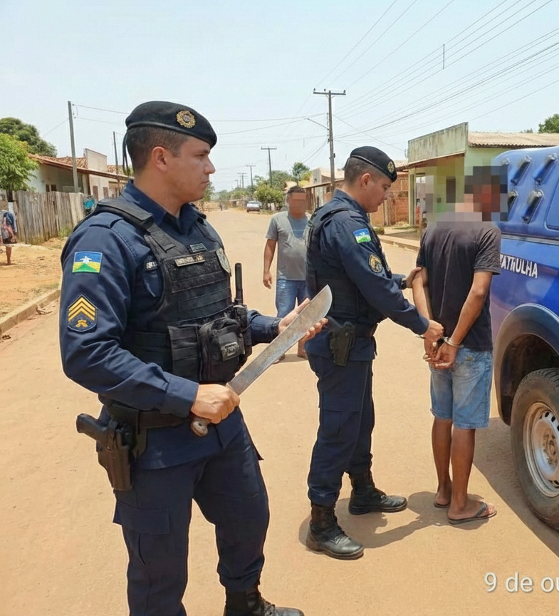 Com a rápida intervenção policial, o suspeito foi localizado portando a arma branca, recebeu voz de prisão e foi conduzido à Delegacia de Polícia Civil, onde foram tomadas as providências legais cabíveis, com a garantia de seus direitos.