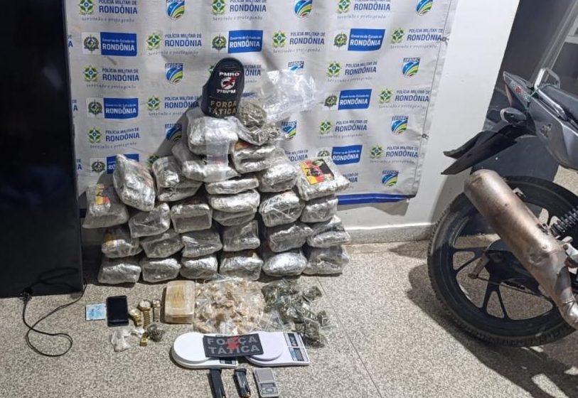 Operação conjunta entre a Força Tática e o Núcleo de Inteligência da Polícia Militar de Rondônia resultou na apreensão de aproximadamente 32 kg de entorpecentes, munições de uso restrito e diversos materiais utilizados no tráfico de drogas, em uma residência localizada no bairro São Luiz, em Ariquemes. A ação foi deflagrada após monitoramento do local, apontado como ponto de armazenamento e distribuição de drogas por um integrante de facção criminosa.
