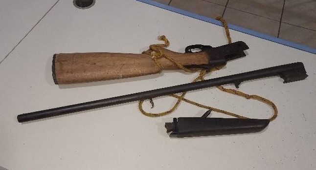 Durante a verificação, os policiais constataram que o homem transportava uma espingarda desmontada, sem numeração, além de cinco munições calibre .20. Ao ser questionado sobre a posse e o registro da arma, o abordado informou não possuir documentação nem autorização para o porte.