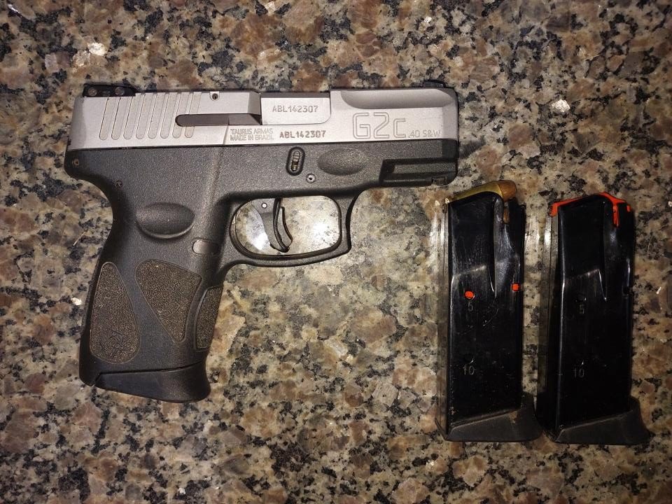 Durante buscas na residência, os policiais encontraram uma pistola calibre .40, com carregadores e munições, escondida no quintal. A arma estava pronta para uso. Após verificação, constatou-se que o armamento possuía registro de roubo ocorrido anteriormente.
