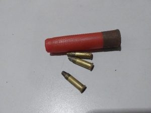 Diante da suspeita, os policiais realizaram uma busca e encontraram uma arma de fogo artesanal, calibre .22, acompanhada de três munições intactas do mesmo calibre, todas acondicionadas em uma sacola plástica. No interior do imóvel, foram localizadas diversas embalagens plásticas com odor característico de substância entorpecente, acondicionadas dentro de uma caixa de papelão. Além disso, foi encontrado um cartucho deflagrado de espingarda calibre .28.