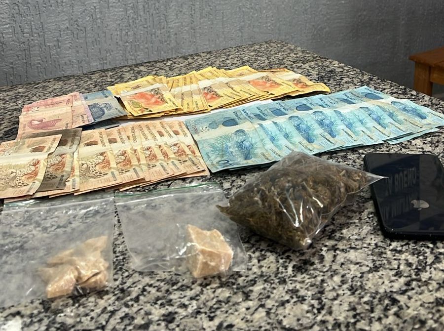 Durante diligências no bairro Jardim das Oliveiras, a equipe policial flagrou um homem em atitude suspeita, que tentou evadir-se ao perceber a aproximação da viatura. Na abordagem, os militares localizaram duas porções de crack, pesando cerca de 50 gramas, e um pacote de maconha, com aproximadamente 54 gramas, ambos acondicionados em sacos plásticos do tipo zíper. Além disso, foram apreendidos R$ 2.451,00 em espécie e um aparelho celular, que será periciado.