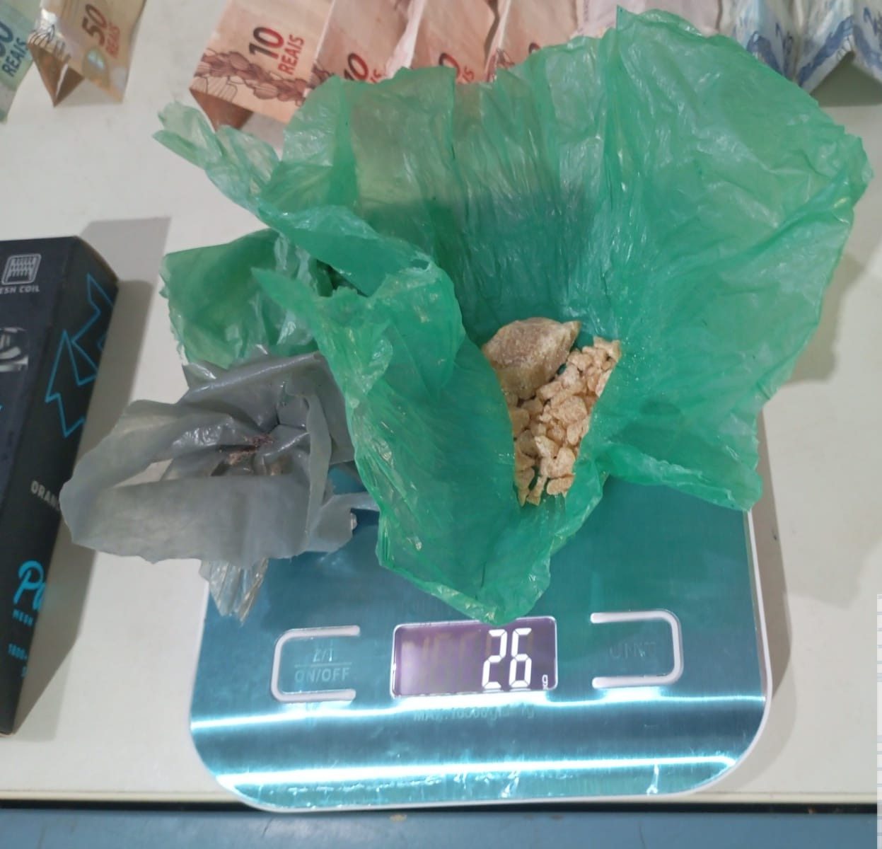 A equipe, composta por policiais do 7º BPM, deslocou-se até o local após receber denúncia sobre armazenamento de drogas. Durante as buscas, os militares localizaram três porções de substância entorpecente do tipo crack, totalizando 26 gramas, escondidas em um galinheiro, além de dinheiro trocado e outros materiais de interesse da investigação. No momento da abordagem, a suspeita assumiu a propriedade da droga e confirmou a prática de comercialização.