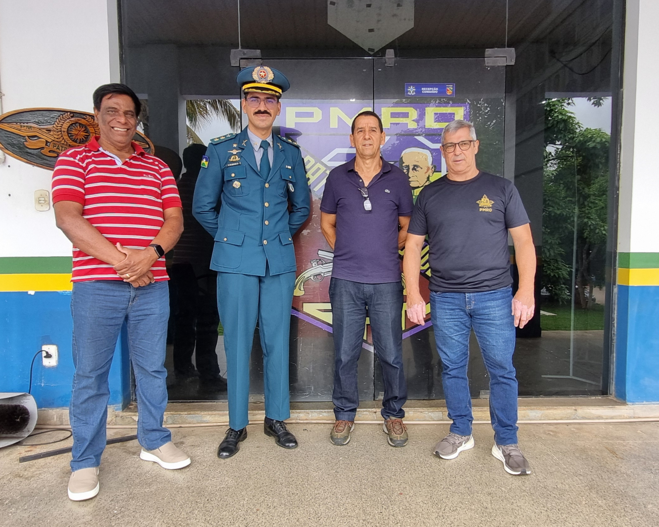 A visita foi recepcionada pelo Comandante do Primeiro Batalhão, tenente-coronel PM Miranda, que recebeu o coronel Alberto, ex-comandante do Primeiro Batalhão, o coronel Leandro Rodrigues, ex-Comandante-Geral da Polícia Militar do Estado do Acre, e o coronel Márcio Souza, da Polícia Militar do Acre.