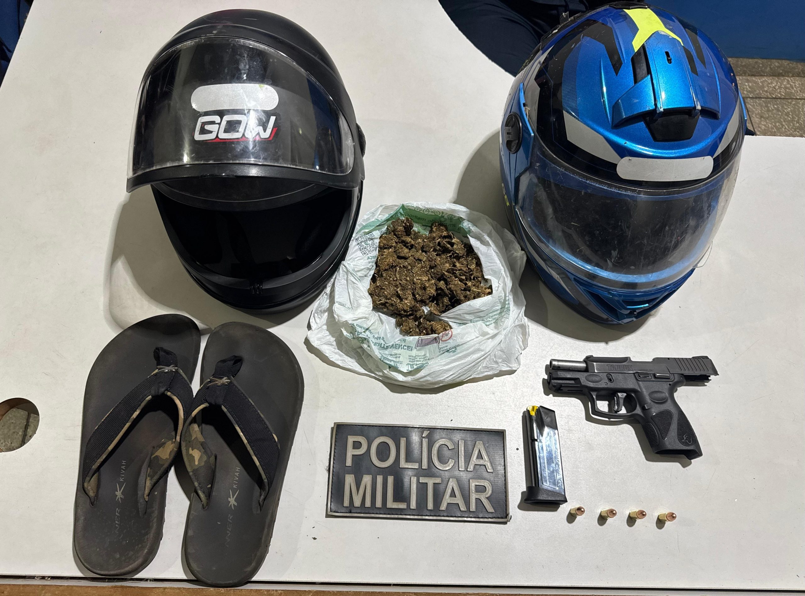 Durante os desdobramentos da ocorrência, o suspeito levou os policiais até sua residência, onde foram encontrados entorpecentes e dois celulares. Também foi confirmado que havia um mandado de prisão em aberto contra ele.