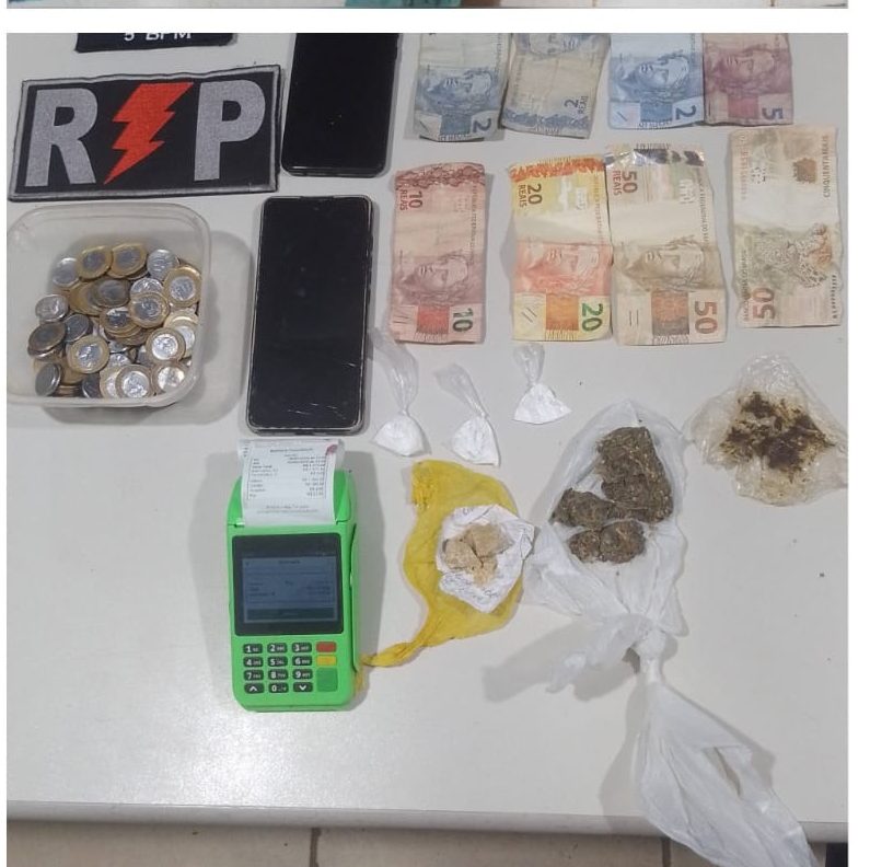 Durante revista pessoal, os militares encontraram com um dos suspeitos aproximadamente 3 gramas de substância análoga ao crack, além de R$ 44,00 em dinheiro trocado, uma balança de precisão e um aparelho celular. Diante dos fatos, ele recebeu voz de prisão em flagrante pelo crime de tráfico de drogas, conforme o artigo 33 da Lei nº 11.343/2006.