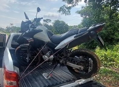 Durante o patrulhamento intensificado pela região, um morador relatou ter visto dois homens empurrando uma motocicleta branca, sendo rebocados por outra moto vermelha e preta, nas proximidades do Igarapé Bate Estacas. A guarnição seguiu as pistas e, após buscas minuciosas, localizou o veículo escondido em uma área de mata próxima à estrada de Santo Antônio.