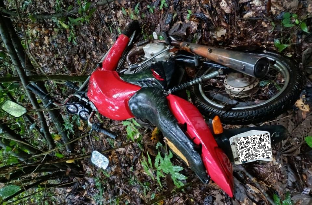 Foram adotadas as medidas necessárias para a retirada do bem do interior da mata, com cautela para preservação de possíveis vestígios de interesse investigativo. Em seguida, a motocicleta foi encaminhada à Delegacia de Polícia Civil, onde foi formalizada a recuperação e adotadas as providências cabíveis.