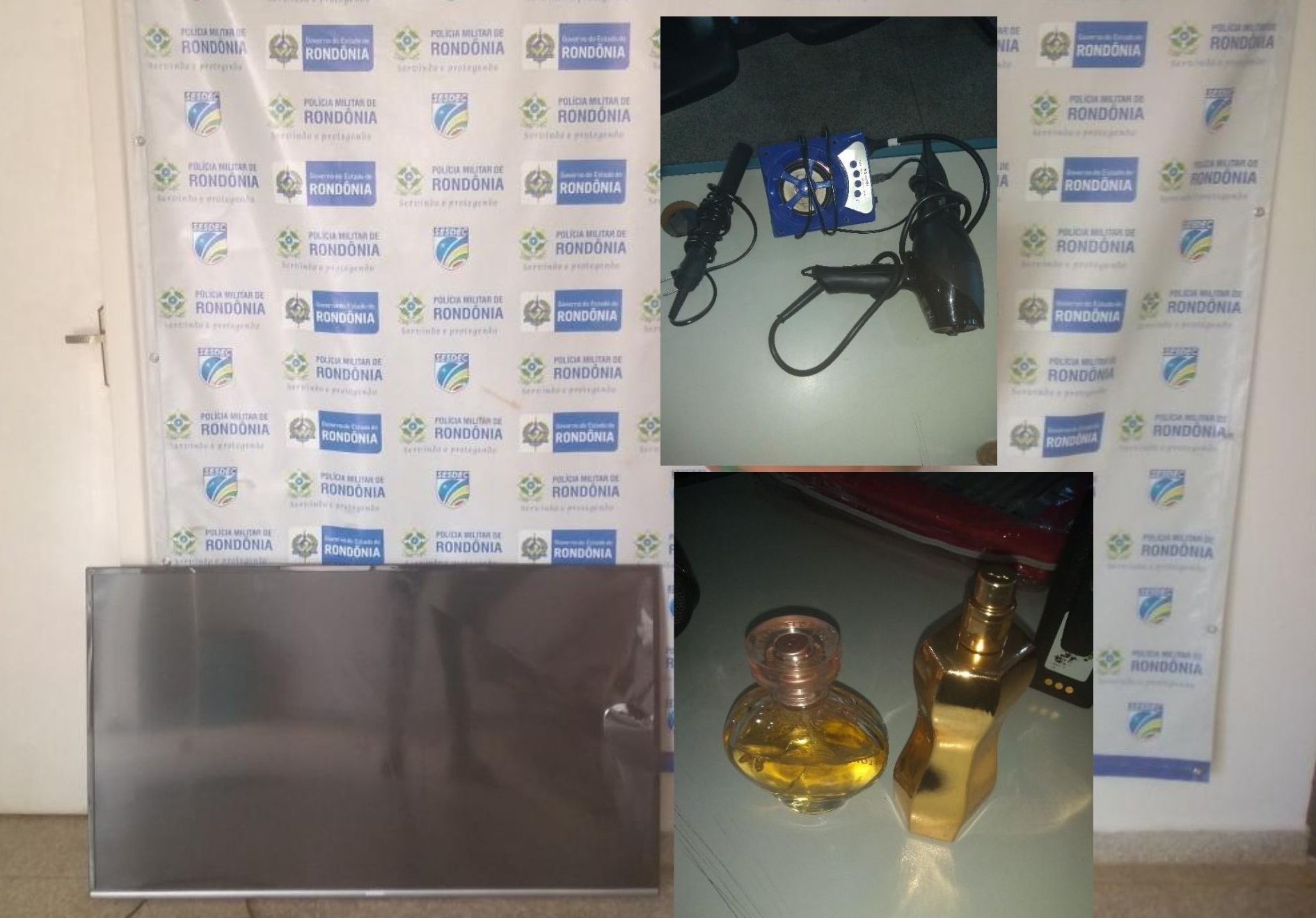 Ao ser questionado sobre a procedência da televisão, o homem de 31 anos, confessou que a furtou numa residência no bairro Setor 01. Uma outra equipe policial foi ao local indicado e constatou que a residência estava violada. A vítima após saber sobre o furto em sua residência, notou que além da TV, também foram subtraídos outros objetos, sendo eles um secador de cabelo, uma chapinha de cabelo, uma caixinha de som, dois perfumes e uma cortina ainda na embalagem. Todos estes objetos foram encontrados com o autor do crime.