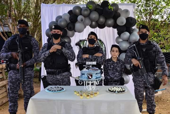 O sonho de crianças que desejam se tornar policiais militares tem ganhado um reforço todo especial. No dia 18/09/2021, na cidade de Ariquemes, Nicolly completou seus 10 anos e teve a presença de uma guarnição do PATAMO – Patrulhamento Tático Móvel. Ainda mais inspirador para a aniversariante foi estar ao lado de uma policial feminina da fração especializada.