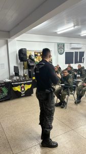 A Seção de Ensino e Pesquisa do Batalhão de Choque da Polícia Militar de Rondônia realizou instrução voltada para os participantes do XIV Estágio de Polícia da Aeronáutica. Durante o curso, foram ministradas orientações sobre o Uso Progressivo da Força e Noções de Controle de Distúrbios Civis, visando aprimorar o conhecimento e a atuação dos policiais militares e aeronautas em situações que demandam técnicas especializadas de contenção e controle.