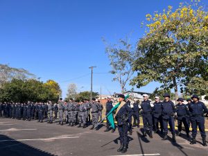 Durante a cerimônia, um policial militar foi promovido da graduação de 3º para 2º Sargento, conquista que simboliza o reconhecimento pelo empenho, dedicação e compromisso com a segurança pública.