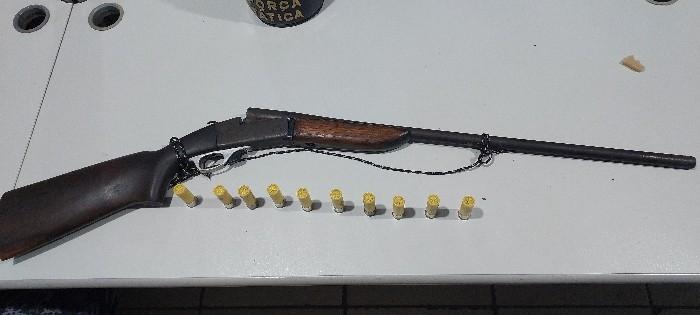 Durante a verificação, o detido relatou ter vendido os objetos a um comerciante da região. A equipe deslocou-se até o endereço indicado, onde o comerciante afirmou ter entregue a arma a um conhecido após saber que buscas já haviam sido feitas na residência do suspeito. Em continuidade às diligências, a guarnição localizou a espingarda calibre 20 e 10 munições, escondidas aos fundos de outra residência.